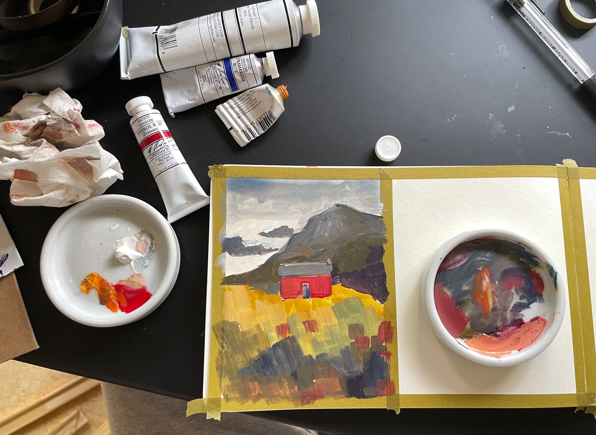 Earlier this month I shared a way to understand color as relative. Another way to explore this concept is to paint the same image with different limited palettes– in each case I'll be using a red, blue and yellow plus white. Each combination I choose will create a different range of possible colors. We'll be looking at a set of landscape paintings and then applying the principles to skin colors.