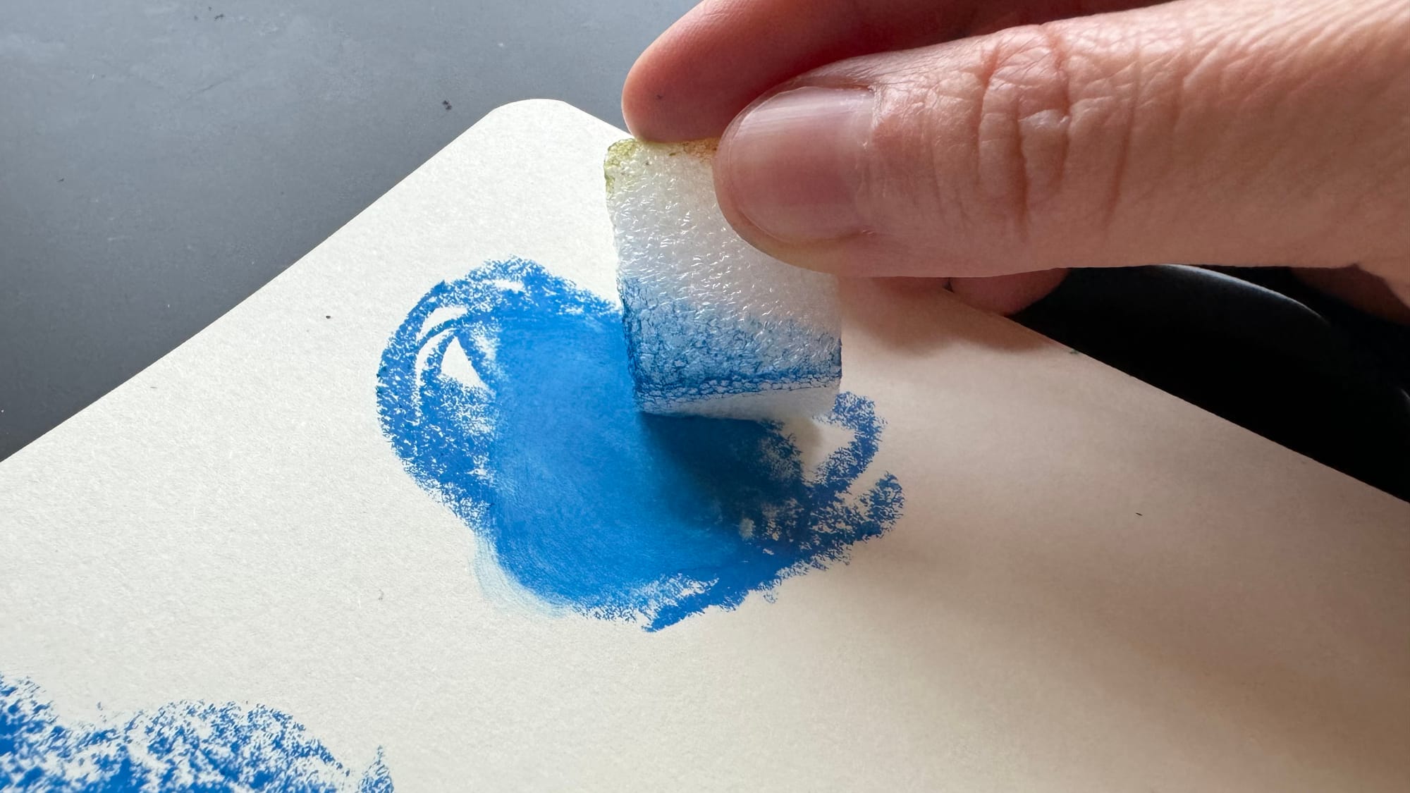 To blend, I am using a little bit of styrofoam leftover from some packaging material. You can also blend with paper blending stumps, your finger or a bit of cloth or paper towel.
