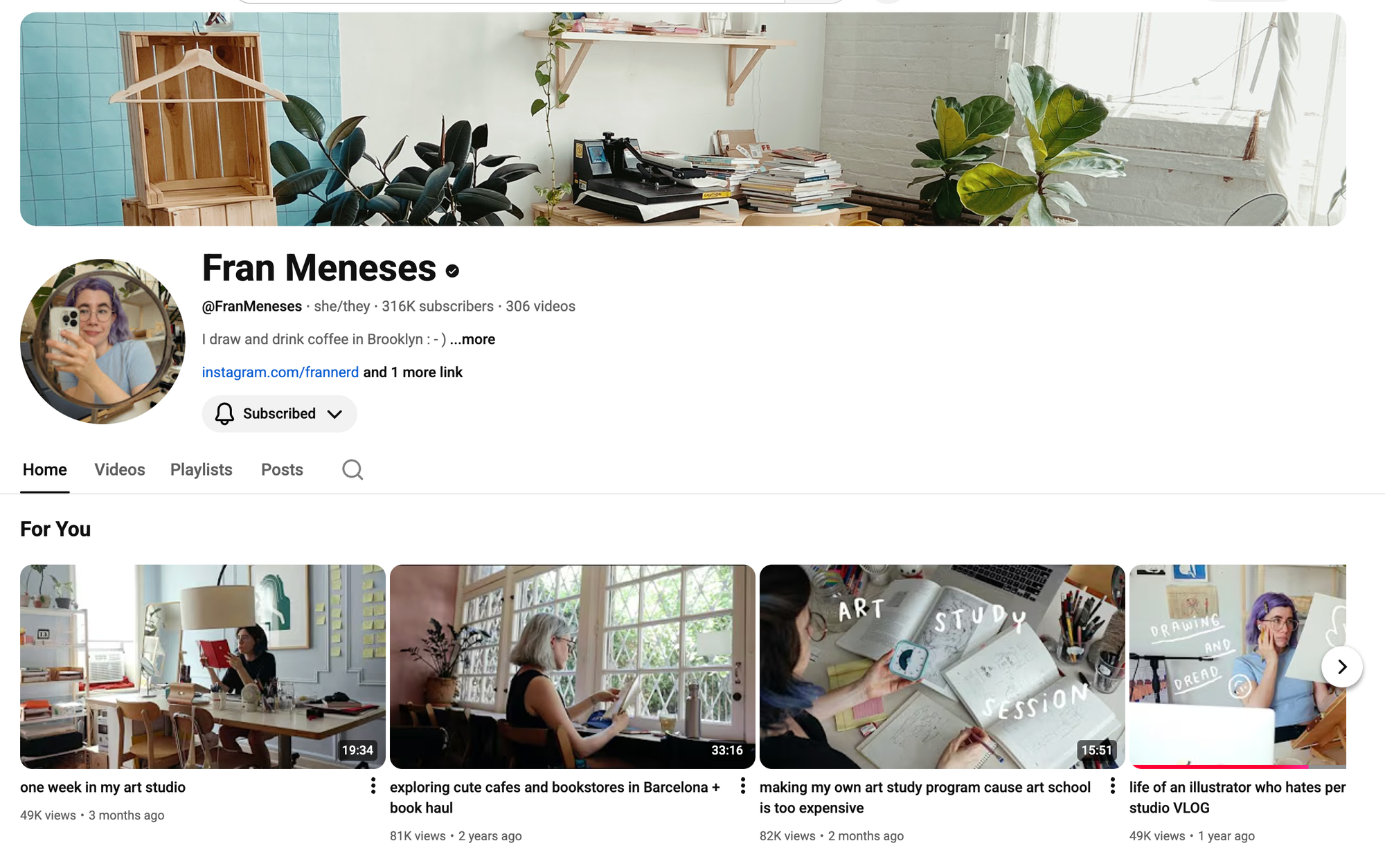Two of my favorite artist vloggers are Fran Meneses and PearFleur. They both have large followings, but if either are new to you, you're in for a treat.