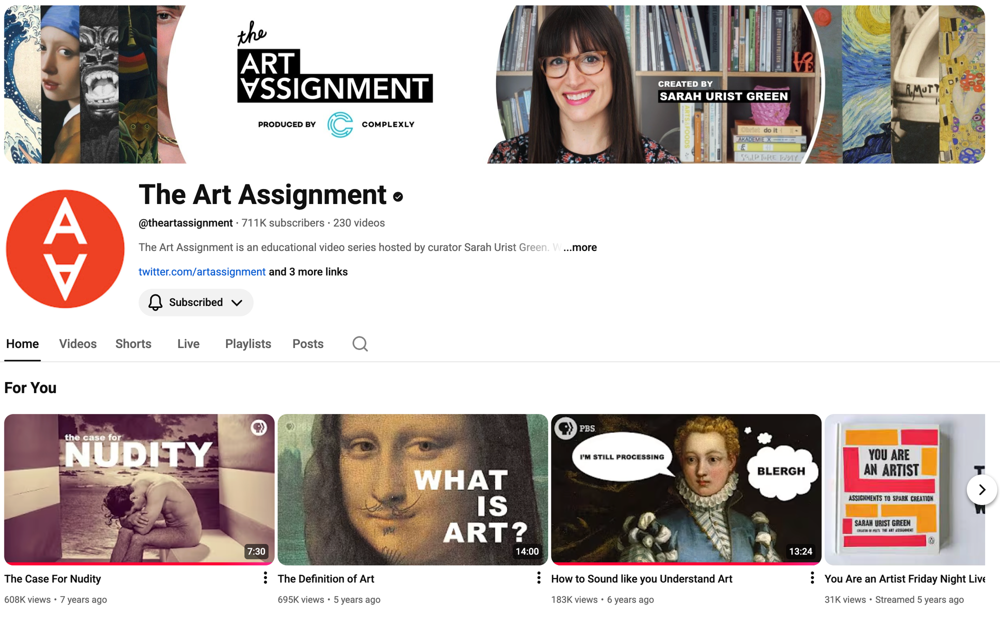 I've learned from so many creators' videos, but two that come to mind as deep and reliable sources for teaching are Kenzo and Mayko's Love Life Drawing (figure drawing) and Sari Shryack's Not Sorry Art (art, general). Both of them do a great job of making quick videos that are beginner friendly and have a clear and interesting idea to influence your practice or getting you thinking about something new.