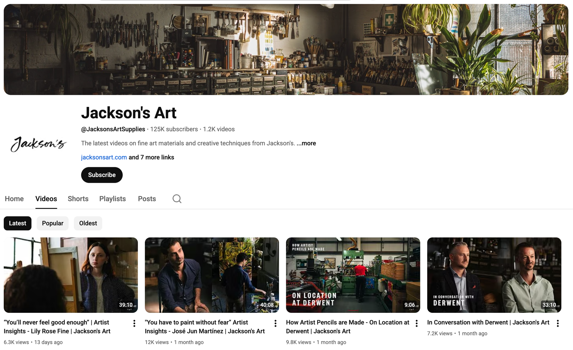 Jackson's Art, a large fine art supply retailer in the UK, has a lively channel profiling artists and art material suppliers. While Louisiana channel focuses on fine art, Jackson's will highlight a wider range of artists. I have particularly enjoyed some of their studio visits with emerging illustrators and sketchbook artists.